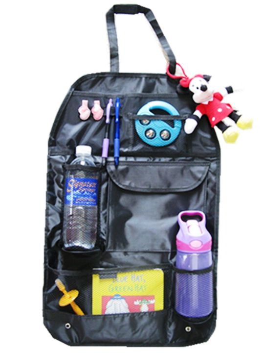 Car Back Seat Organizer Storage Bag Hanging Mesh Pockets With Multi Compartments (Beige)